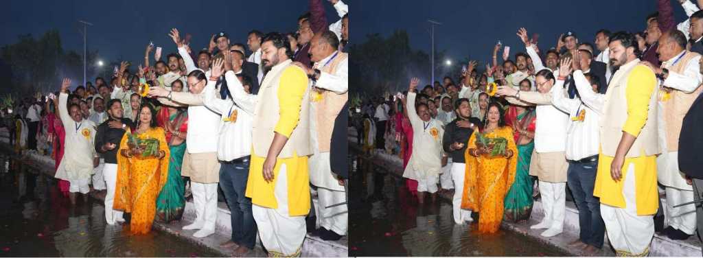рд╕реАрдПрдо рдкреБрд╖реНрдХрд░ рд╕рд┐рдВрд╣ рдзрд╛рдореА рд╢реНрд░рджреНрдзрд╛рд▓реБрдУрдВ рд╕рдВрдЧ рдЫрда рдШрд╛рдЯ рдкрд░ рд╕реВрд░реНрдп рдХреЛ рдЕрд░реНрдШреНрдп рджреЗрддреЗ рд╣реБрдП,