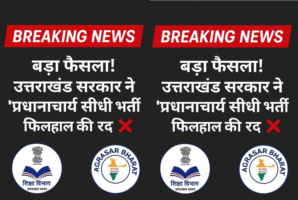 📰 “📢 बड़ा फैसला! उत्तराखंड सरकार ने ‘प्रधानाचार्य सीधी भर्ती’ फिलहाल की रद्द ❌ — शिक्षकों के विरोध और सुप्रीम कोर्ट के आदेश ने बदला खेल!”