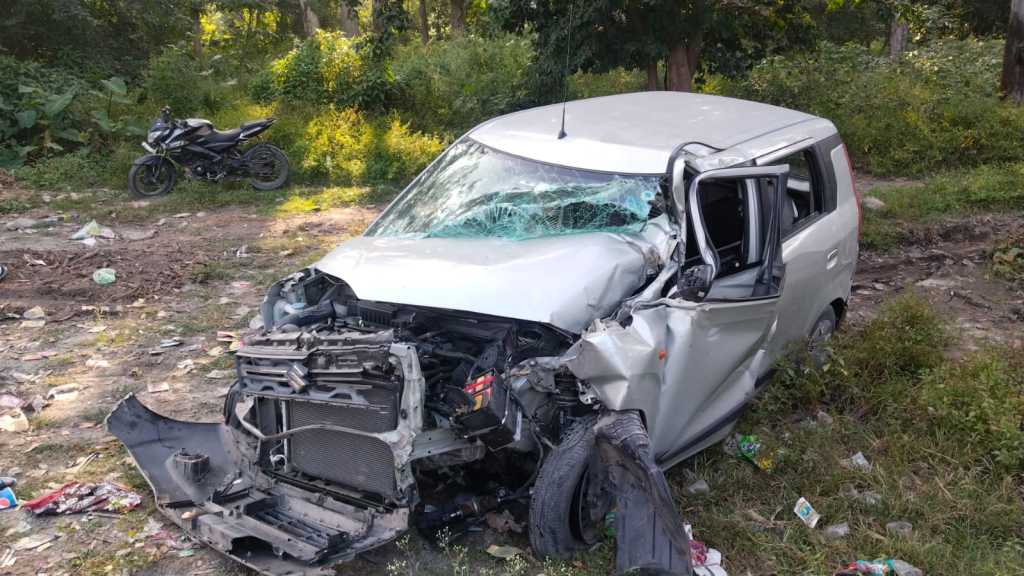 टक्कर के बाद कार अनियंत्रित होकर ट्रक से जा भिड़ी। हादसा इतना जबरदस्त था । की कार पूरी तरह क्षतिग्रस्त हो गई