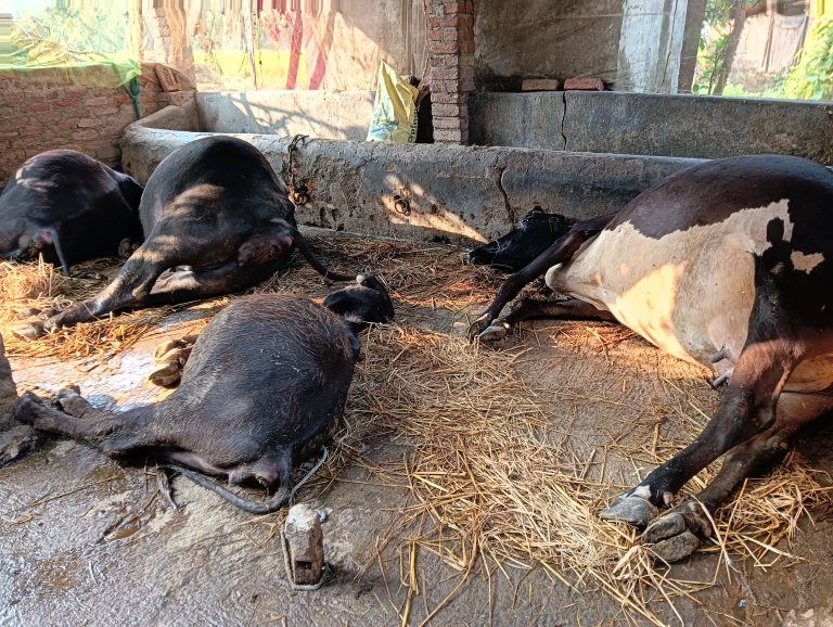 पीड़ित पशुपालक खुशाल राम ने बताया कि उसकी दो भैंसें और पड़िया दिन में जंगल चरने गई थीं और शाम को लौटने पर सभी जानवरों को कुट्टी खिलाई गई। रात करीब 10 बजे के आसपास तीन पशुओं की मौत हो गई, जबकि बंधी गाय ने रात एक बजे दम तोड़ दिया।इस घटना से पूरे परिवार में कोहराम मच गया और आसपास के ग्रामीणों में भी शोक की लहर दौड़ गई। खुशाल राम का मुख्य व्यवसाय दुग्ध उत्पादन था, जिससे परिवार की आजीविका चलती थी। अब सभी पशुओं की अचानक मौत से परिवार गहरे आर्थिक संकट में है।नैनीताल दुग्ध संघ के अध्यक्ष मुकेश बोरा ने इस दर्दनाक घटना पर दुख जताते हुए कहा कि दीपावली अवकाश के बाद पीड़ित परिवार को उचित आर्थिक सहायता और मुआवजा दिलाने की प्रक्रिया शुरू की जाएगी। वहीं, समाजसेवी प्रमोद कॉलोनी ने राज्य सरकार एवं दुग्ध संघ से तत्परता से राहत राशि उपलब्ध कराने की मांग की है।फोटो परिचय: बिंदुखत्ता में अज्ञात कारणों से मृत पाए गए दुधारू पशु