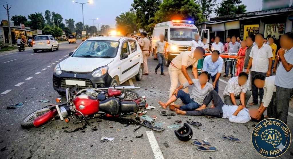 नगला बाईपास के समीप सोमवार शाम एक अनियंत्रित कार की टक्कर से दो बाइक सवार गंभीर रूप से घायल हो गए। प्रत्यक्षदर्शियों के अनुसार, सोमवार शाम लगभग 7:00 बजे एक ऑल्टो कार के चालक ने कथित रूप से नशे की हालत में लापरवाही से वाहन चलाते हुए रॉन्ग साइड में जाकर सामने से आ रही बुलेट (संख्या UK04AS/9004) को जोरदार टक्कर मार दी। टक्कर इतनी भीषण थी कि बुलेट सवार दोनों युवक सड़क पर दूर जा गिरे।